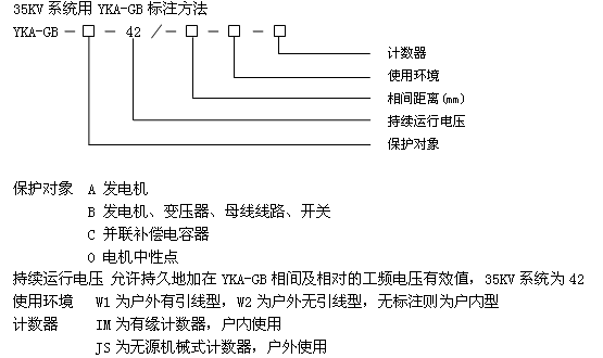 (表3)35KV系统用YKA-GB电气参数表(持续运行电压为:42KV,2ms方波600A)